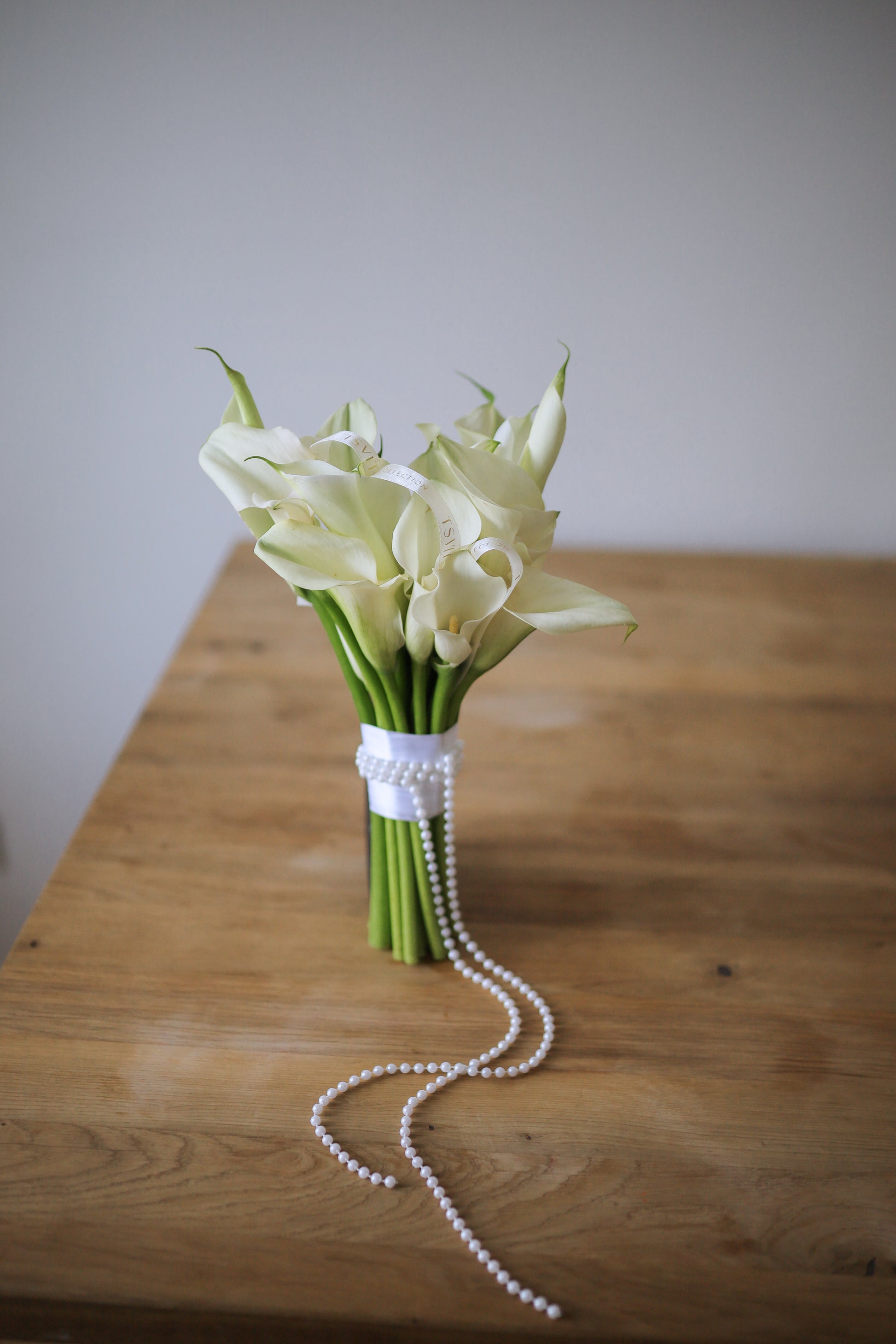 A bridal bouquet with cala lillies perfectly suited for both classic and modern bridal styles, each rose is carefully selected to ensure every detail of your special day